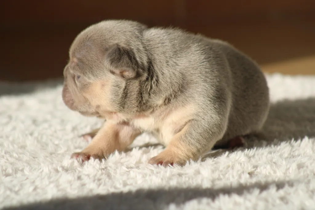 Description du chiot : Amaya By SCBC, née le 16 octobre 2025, est une adorable femelle Bouledogue Français d'une couleur rare et recherchée : lilas tan. Ses yeux verts exceptionnels et sa bouille irrésistible en font déjà une petite star de l'élevage ! Fille d'Eros et Amy, elle sera disponible à partir du 15 décembre 2025.