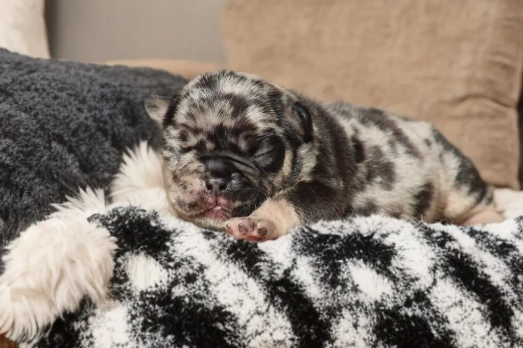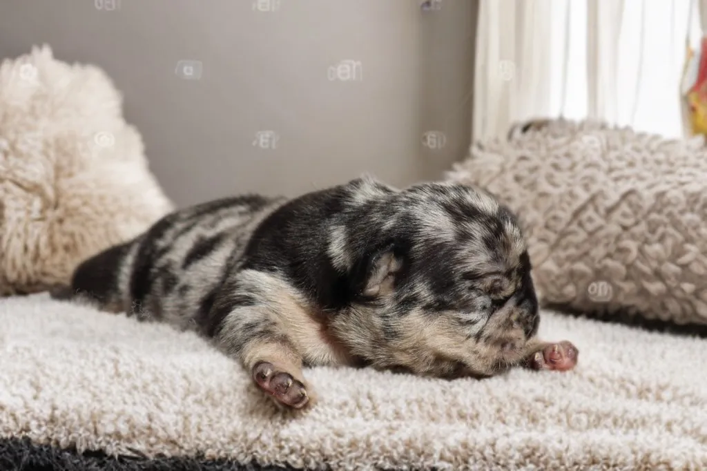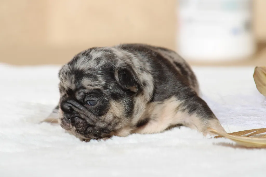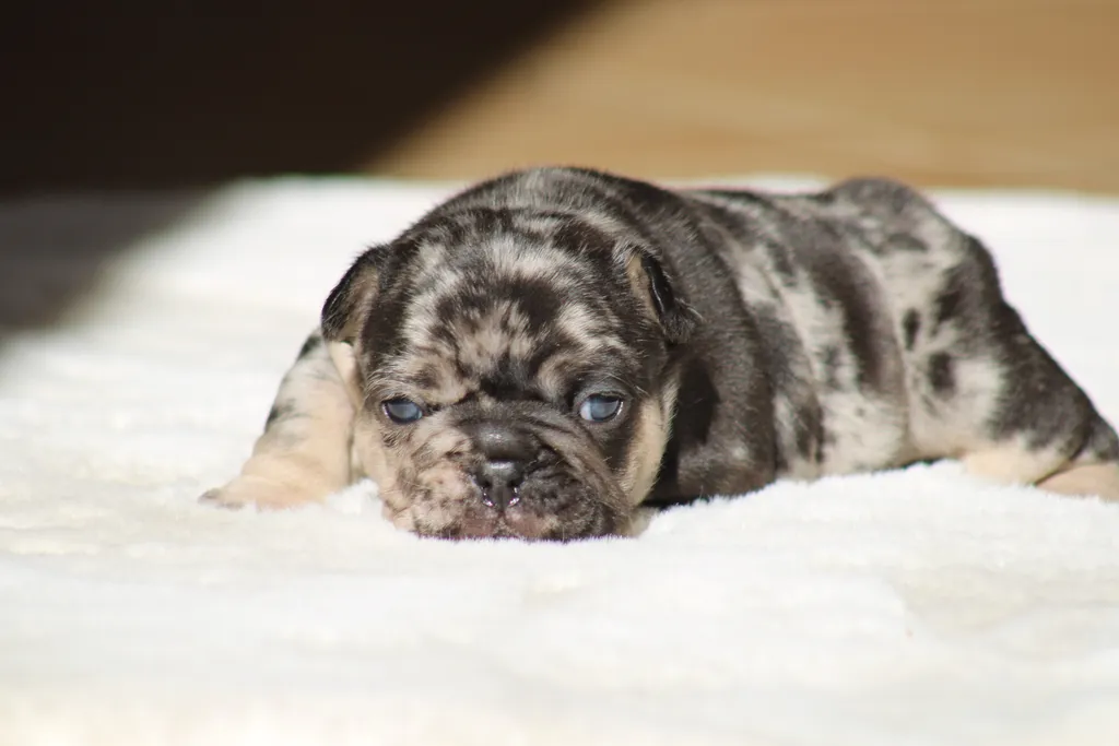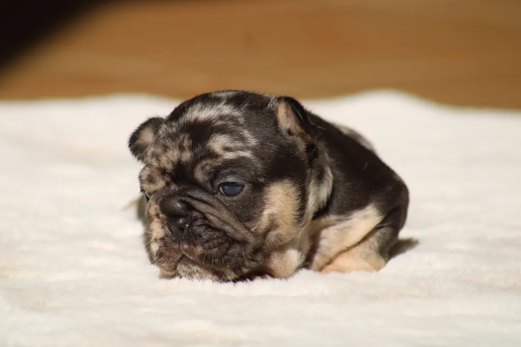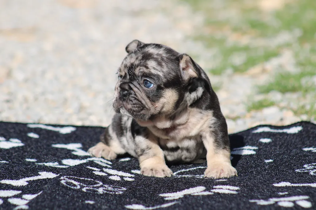 Description du chiot : Bongo est un superbe mâle black merle tan, héritier du mariage Bomba x Blackson. Plein de vitalité et déjà très attachant, il allie une robe originale à un caractère doux et équilibré, idéal pour devenir un compagnon fidèle et affectueux.