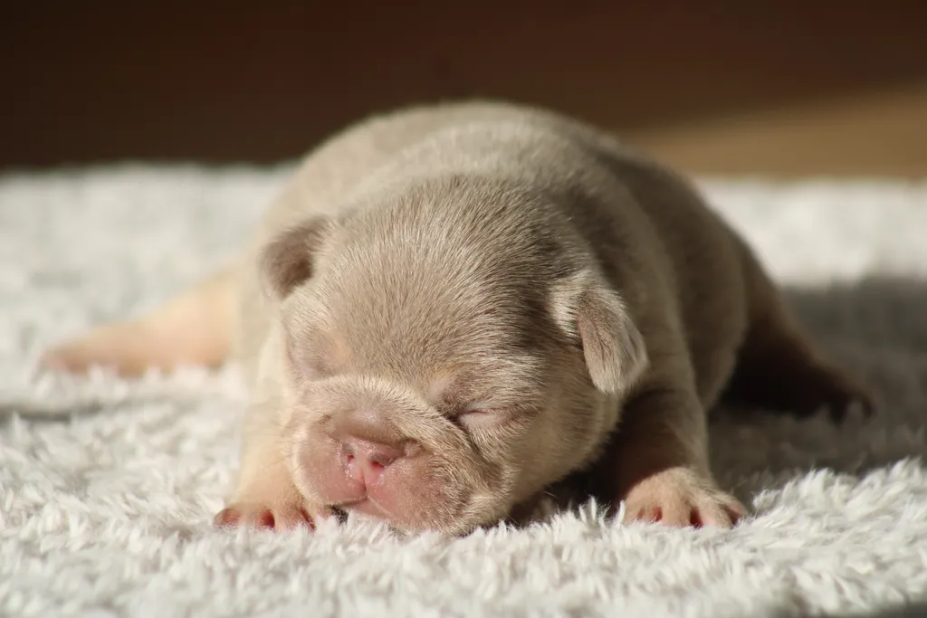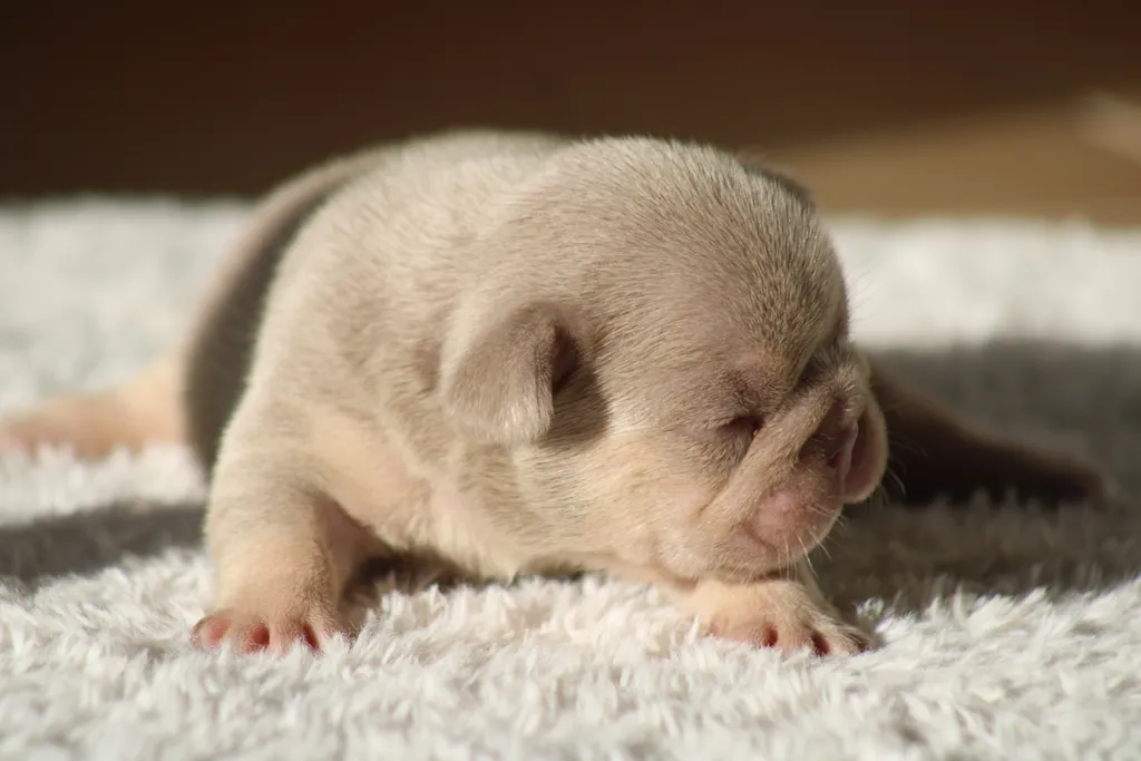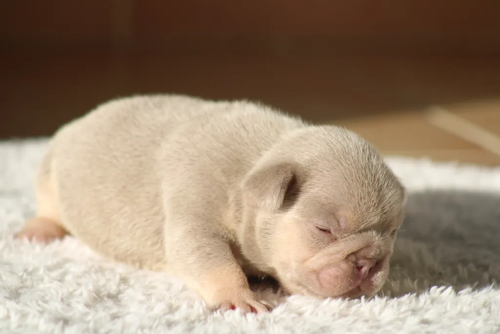 Description du chiot : Merveille By SCBC, née le 16 octobre 2025, porte admirablement bien son nom ! Cette femelle Bouledogue Français arbore une robe Isabella Tan New Shade d'une rareté exceptionnelle, sublimée par des yeux verts fascinants. Fille d'Eros et Amy, cette petite merveille unique sera prête à rejoindre sa famille le 15 décembre 2025.