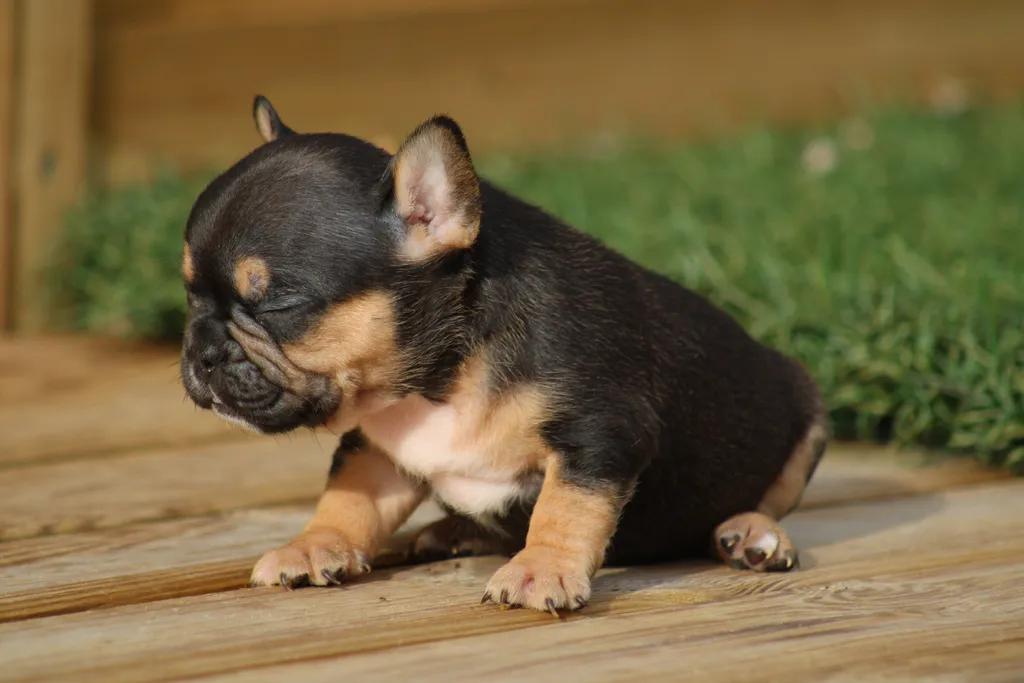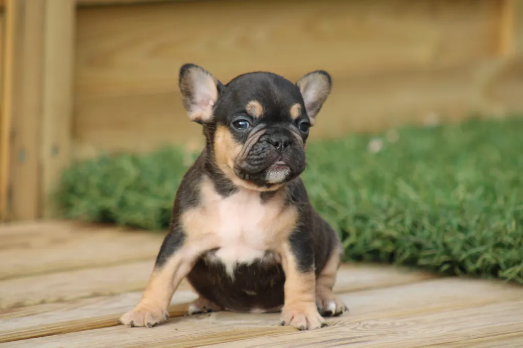 Description du chiot : Patch est un charmant mâle Bouledogue Français Cocoa Cherry Tan, né le 10 octobre 2025. Avec sa robe rare aux reflets chauds et ses yeux jaunes lumineux, il attire déjà tous les regards. Fils de Blackson et Rosalie, il hérite d’une belle prestance et d’une lignée équilibrée. Élevé avec soin et tendresse, Patch grandit sereinement et sera disponible pour rejoindre sa future famille à partir du 9 décembre 2025.