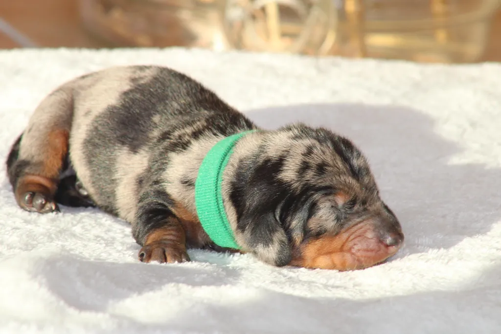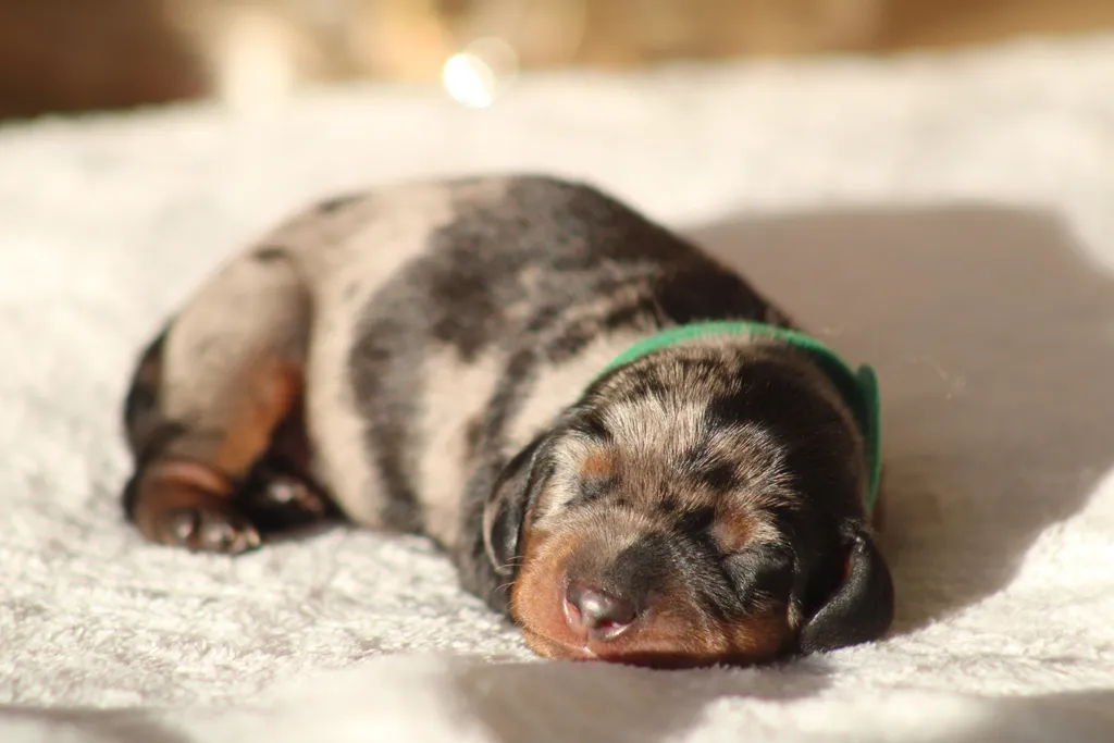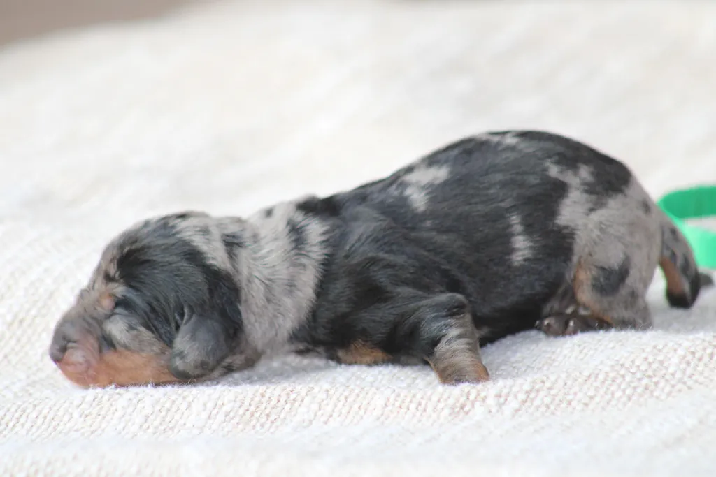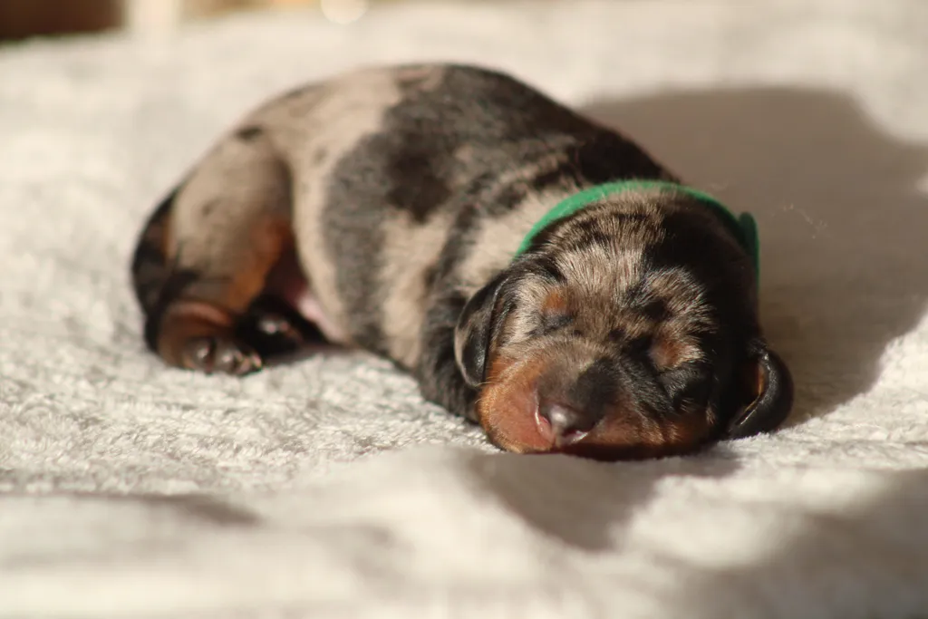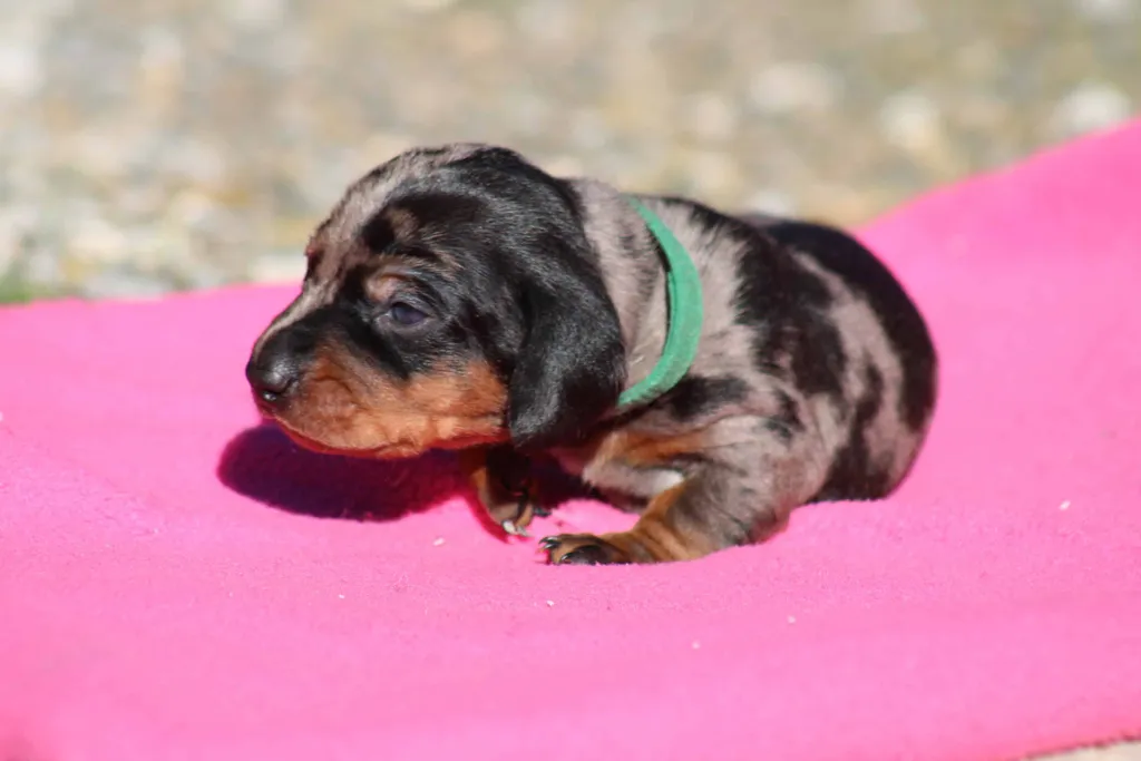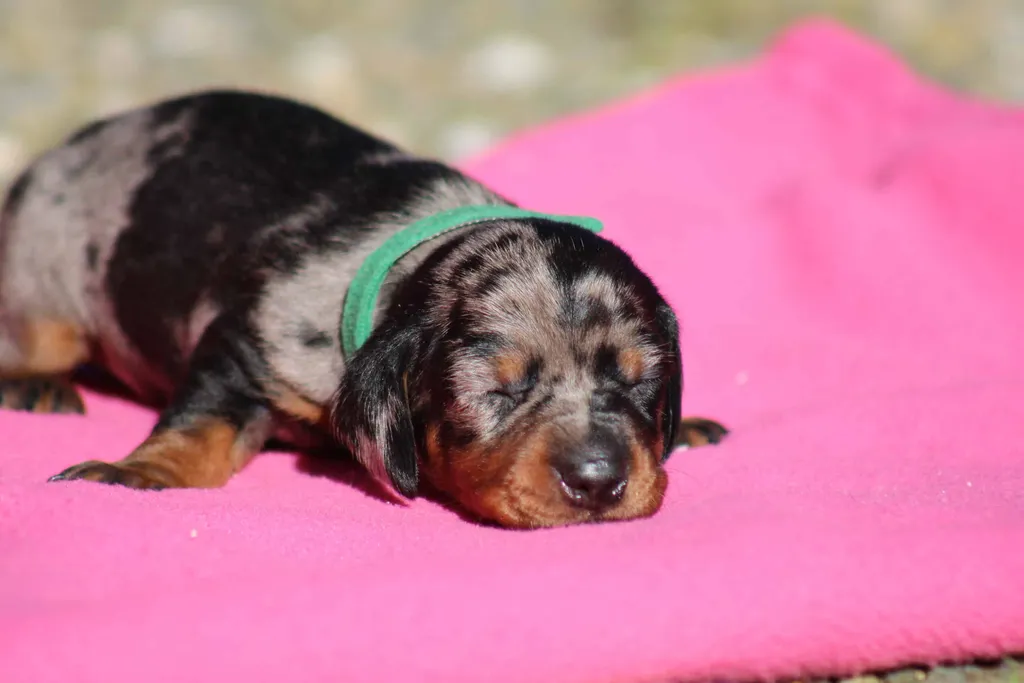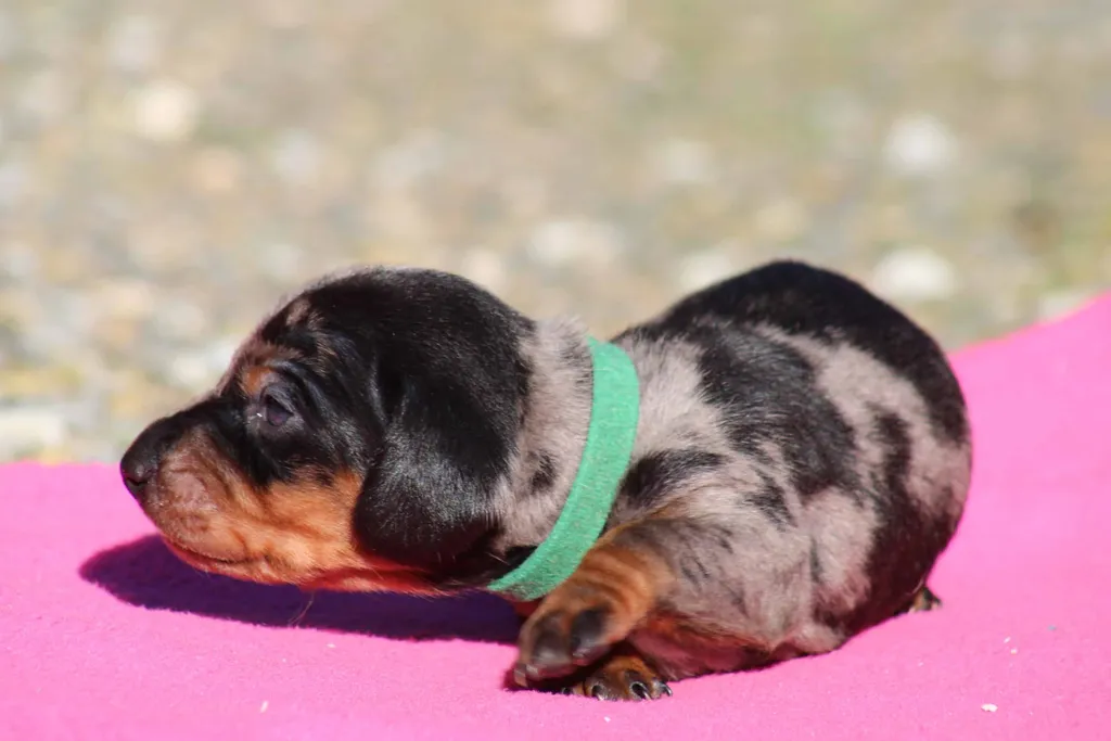 Description du chiot : Faites la connaissance de Popeye By SCBC, un superbe Teckel mâle à la robe Arlequin noir et feu. Né le 8 janvier 2026 en France, Popeye est un petit compagnon plein de promesses, issu d'une lignée de qualité (fils de Nono et Carrie)