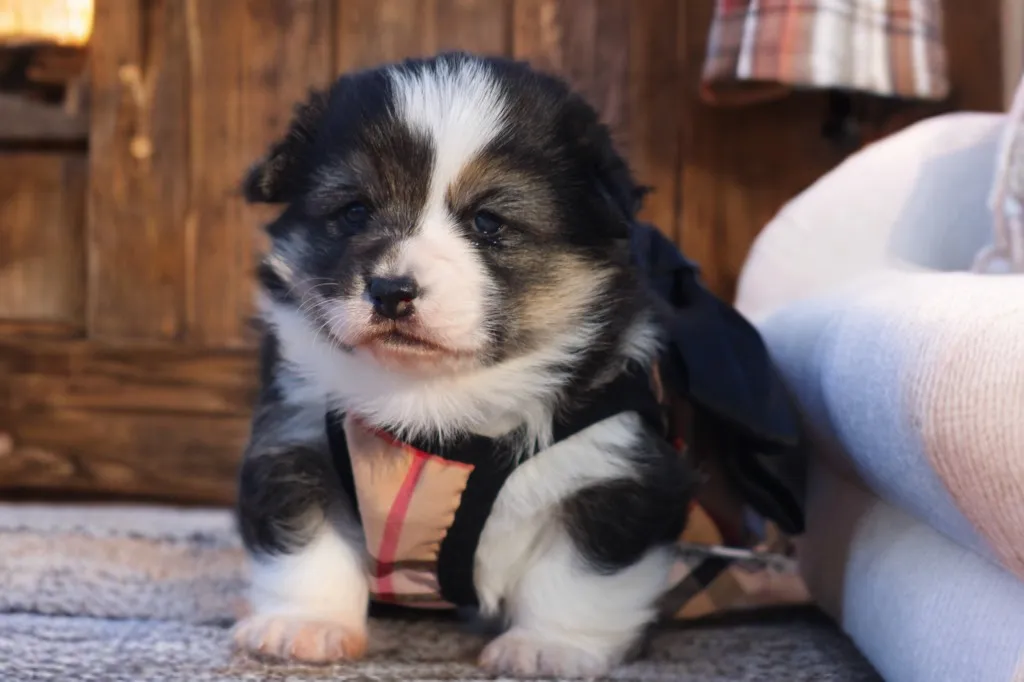 Description du chiot : Babeth By SCBC, née le 5 décembre 2025, est la ravissante femelle de l'union Timmy x Corginette. Cette petite merveille Welsh Corgi Pembroke présente une magnifique robe noir et feu avec un pelage long prometteur. Sœur de Charles, elle sera disponible pour rejoindre sa nouvelle famille dès le 3 février 2026.
