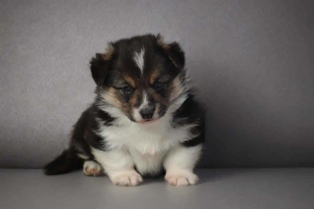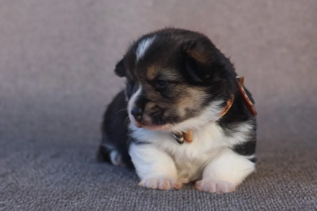 Description du chiot : Charles By SCBC, né le 5 décembre 2025, est le magnifique mâle de l'union Timmy x Corginette. Ce petit prince Welsh Corgi Pembroke arbore une superbe robe noir et feu avec un pelage long qui promet d'être somptueux. Premier de la portée, il sera prêt à rejoindre sa famille dès le 3 février 2026.